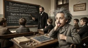 アインシュタインの学校生活は、この観点から見ると興味深い例です。彼が通っていた学校では、規律や暗記を重視する教育が行われていました。教師の説明をそのまま覚え、決められた方法で問題を解くことが求められていたのです。